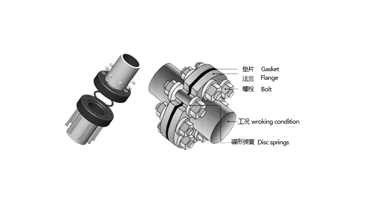 石油化工等工業(yè)的飛速發(fā)展,對(duì)一些管道,法蘭螺栓連接有了更高的要求,尤其對(duì)于有密封要求的連接。目前國內(nèi)外主要采用碟形彈簧來提高螺栓連接的可靠性,防松能力以及連接的緊密性。慕貝爾作為專注于碟形彈簧數(shù)十年歷史的企業(yè),從碟形彈簧的材料,工藝,方案等角度提供了更加安全可靠的解決方案。