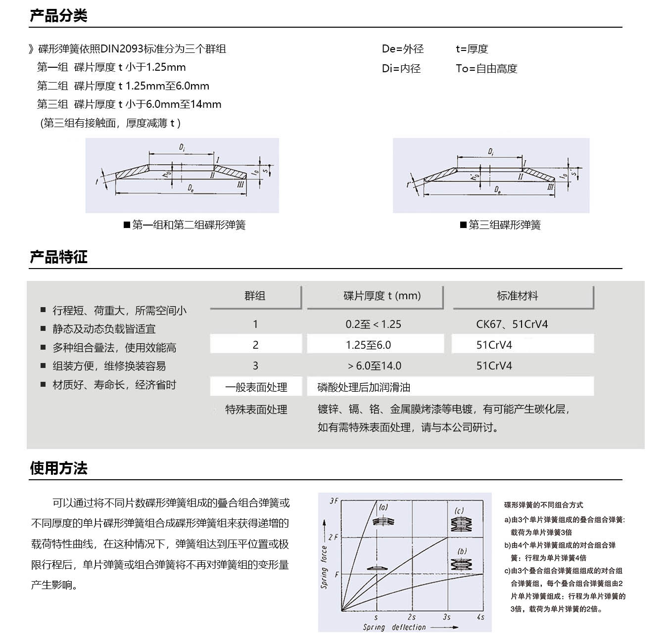 —通過碟形彈簧不同的組合方式可獲得理想的加載特性